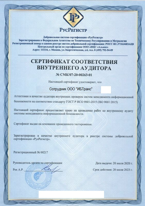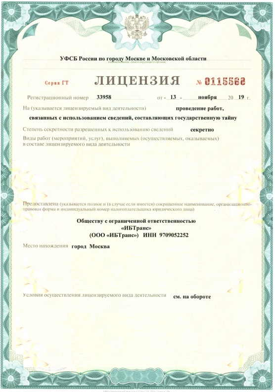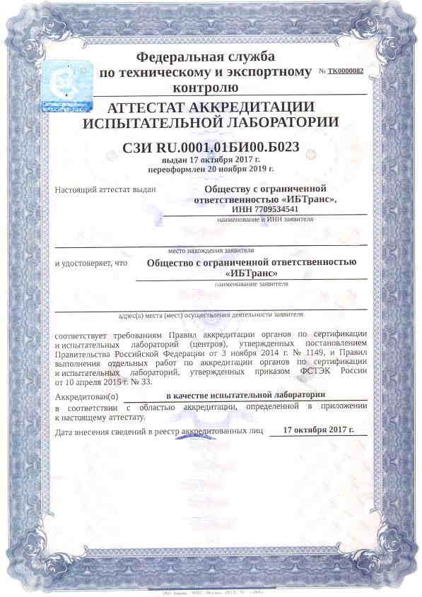 Все представленные лицензии и аттестаты являются действующими. ООО «ИБТранс» регулярно проходит процедуру подтверждения компетенций в соответствующих органах по аккредитации (Росаккредитация, ФСТЭК России, ФСБ России).