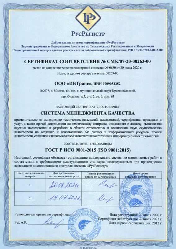 Все представленные лицензии и аттестаты являются действующими. ООО «ИБТранс» регулярно проходит процедуру подтверждения компетенций в соответствующих органах по аккредитации (Росаккредитация, ФСТЭК России, ФСБ России).